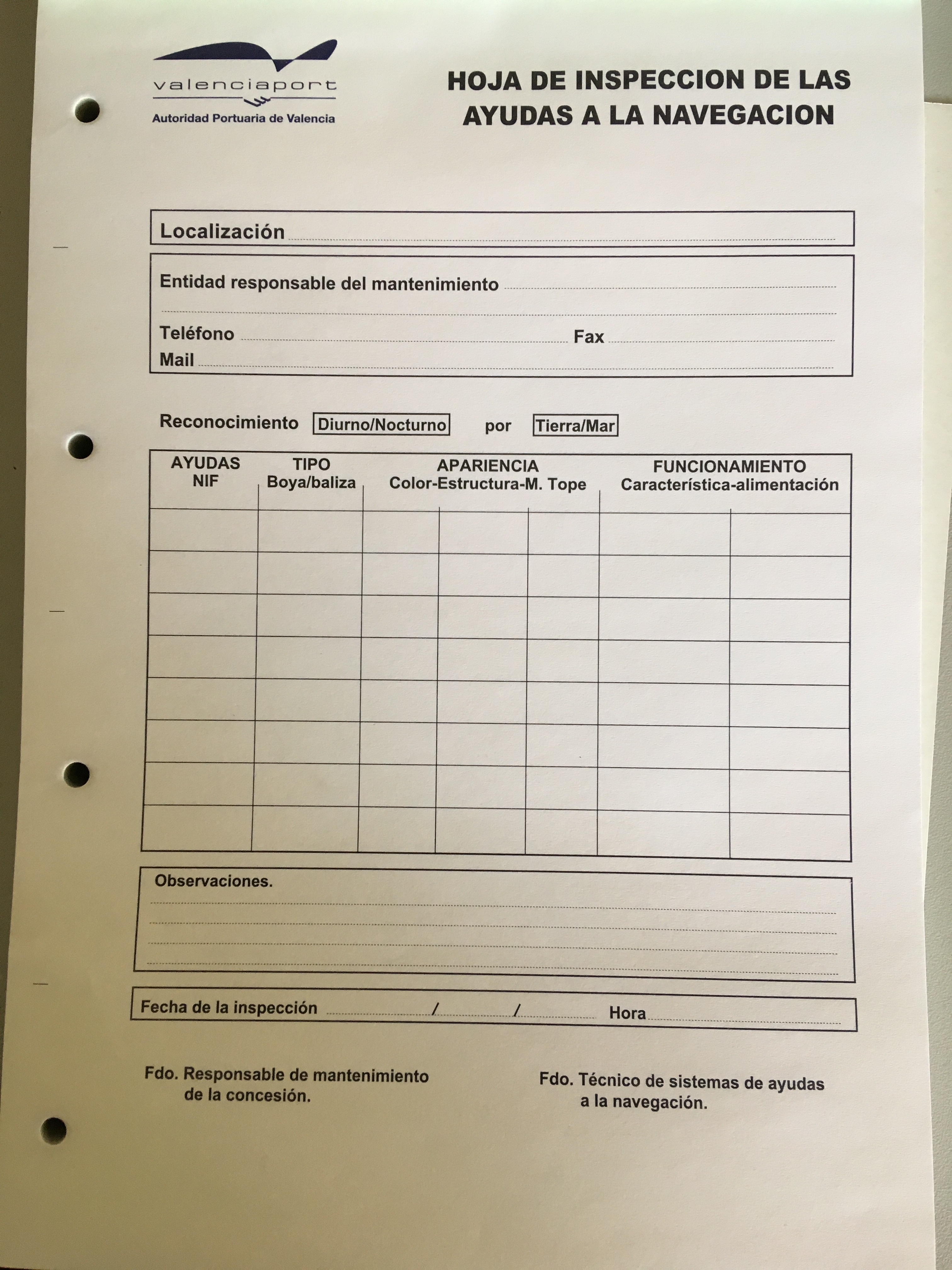 La APV es el organismo inspector de todas las ayudas a la navegación marítima que existen en la provincia de Valencia, según se recoge en la O. M. de 28 de abril de 1994, con independencia de que el responsable del servicio sea una entidad pública o privada.